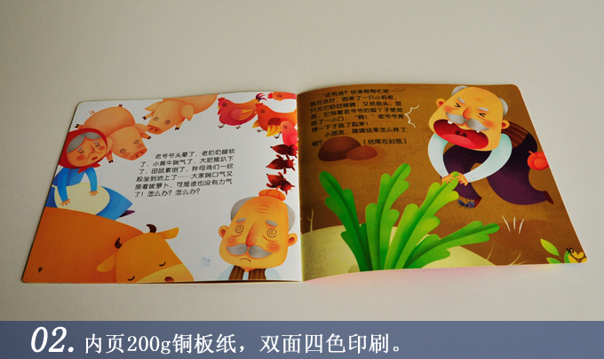 封面250g铜板,单面四色印刷,覆亮膜。内页200g铜板纸,双面四色印刷。